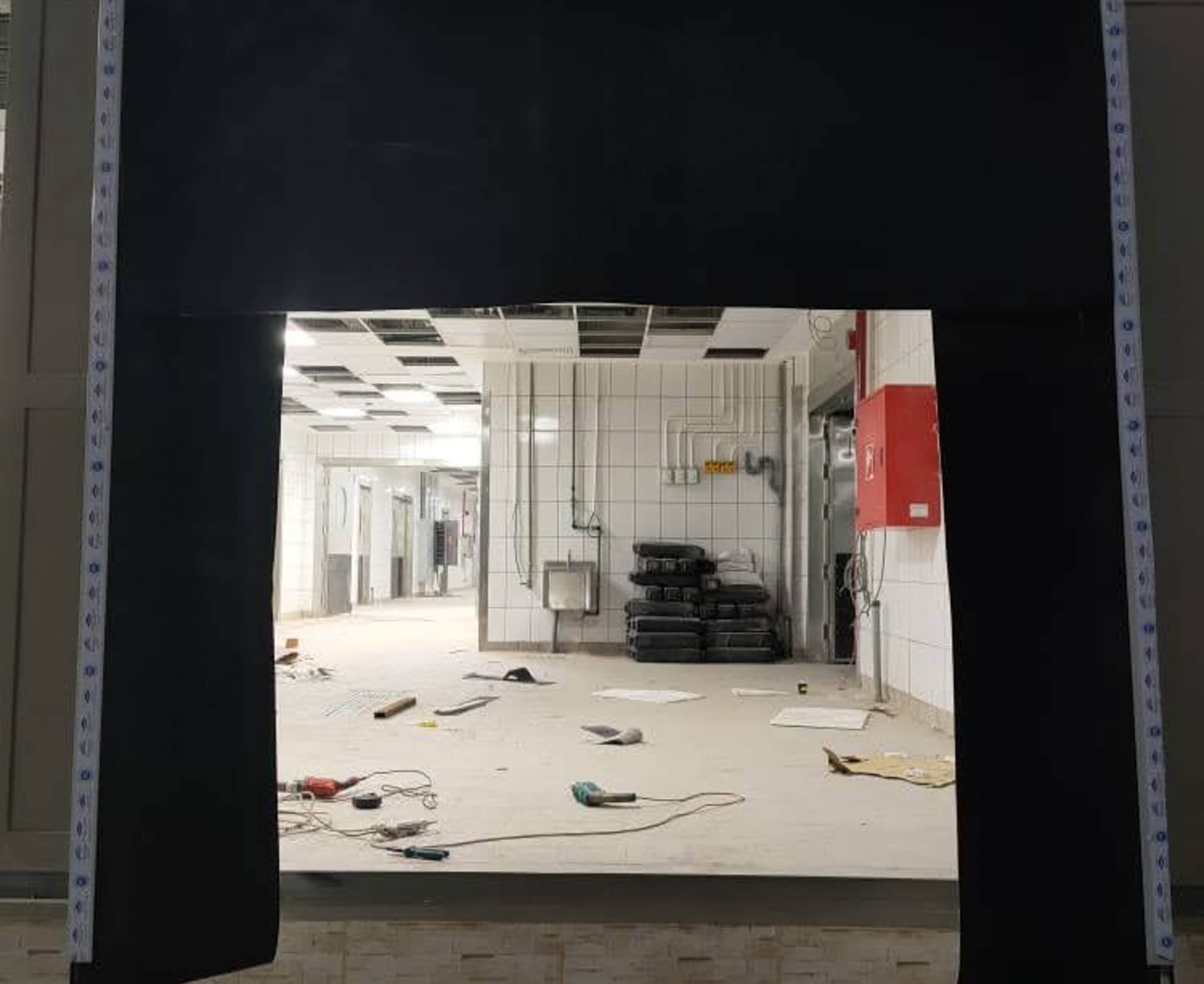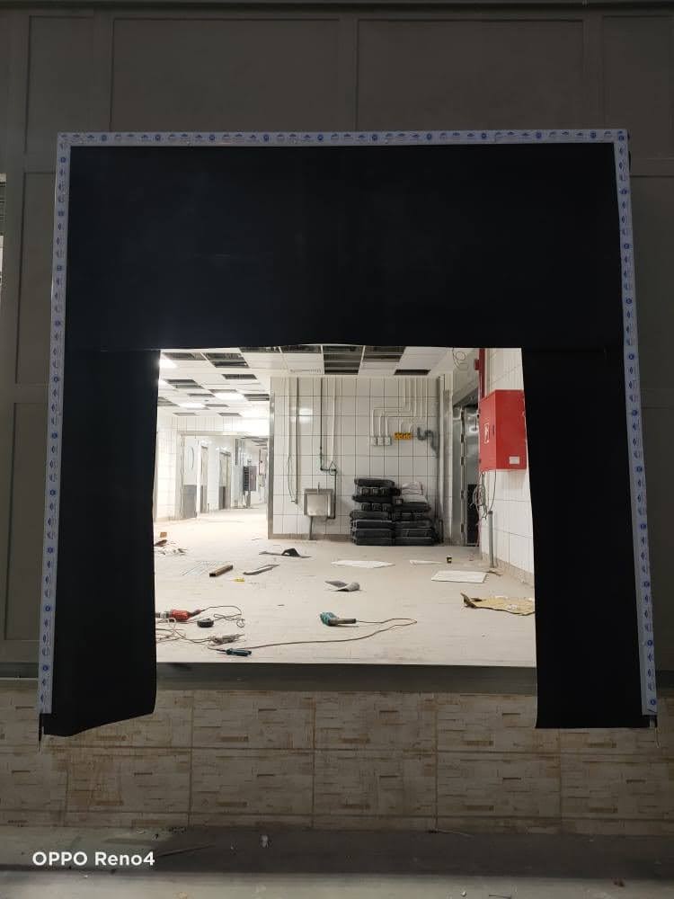 A rubber barrier for loading docks in factories and logistics warehouses. It is manufactured by Grand Gate, the first Egyptian company to manufacture this product. The barrier is manufactured locally with imported materials. It was installed in the project of Bakers factory for the production of Exception sweets.