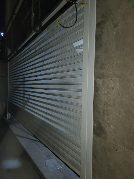 Perforated automatic roller shutters Made for Adidas branch Size:3.5x5 are a type of sliding shutter that opens and closes automatically using an electric motor. These shutters feature small holes in the panels, which allow light and air to pass through. To learn more about perforated automatic roller shutters, contact us today. Benefits