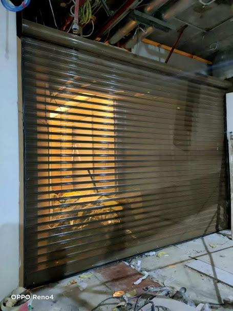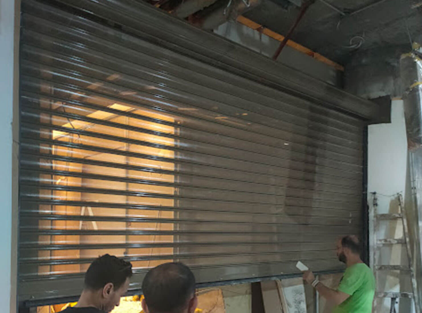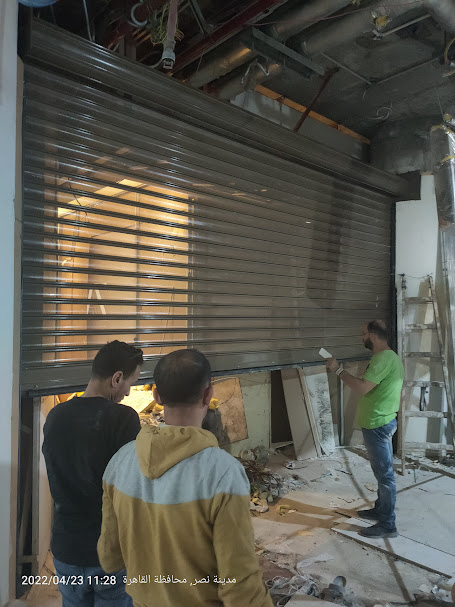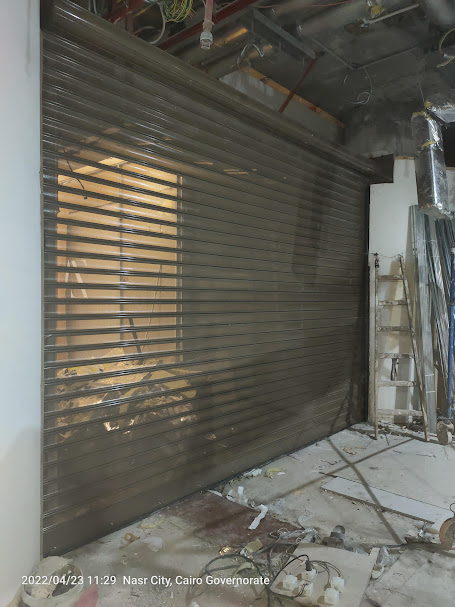 Automatic perforated roller shutter Industrial roller shutters perforated measuring 5 meters wide 4 meters high French Somfy Tubular cylindrical motor Zara City Stars store, Nasr City